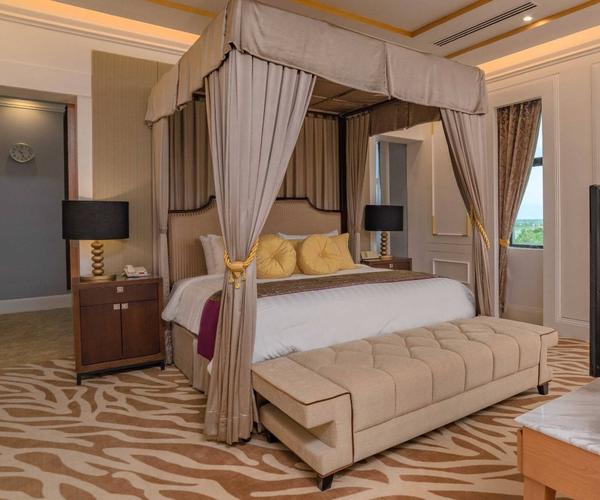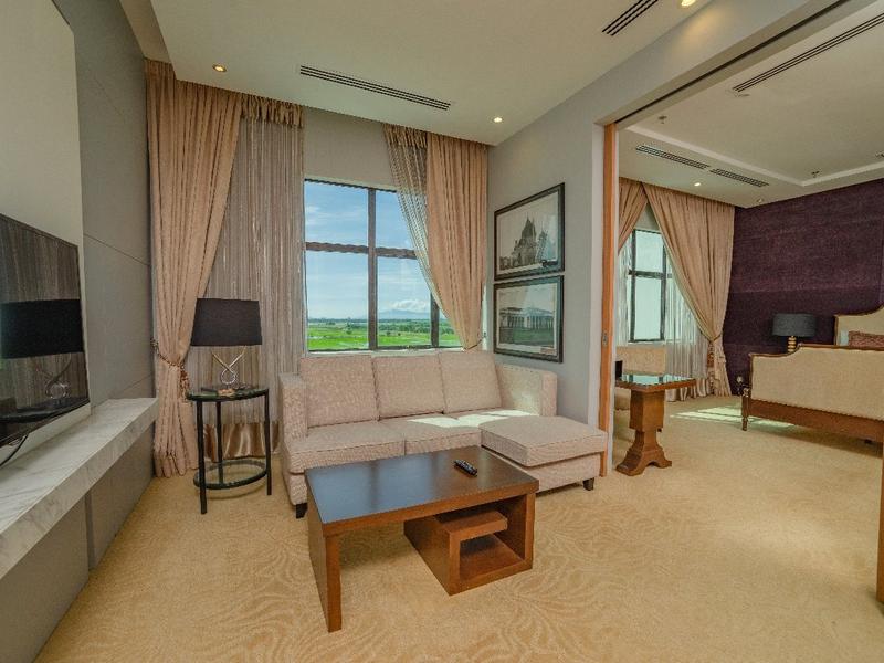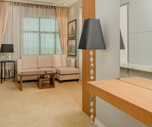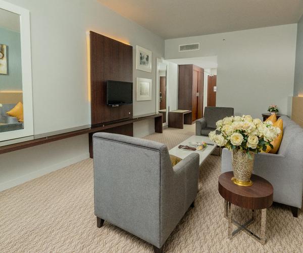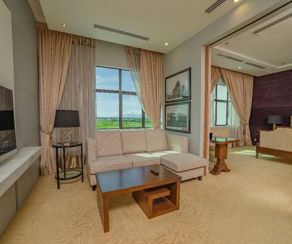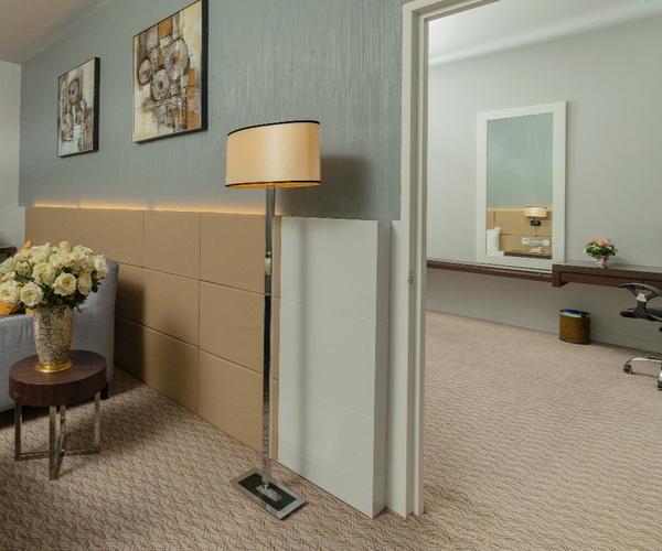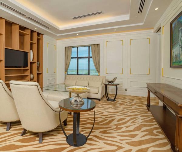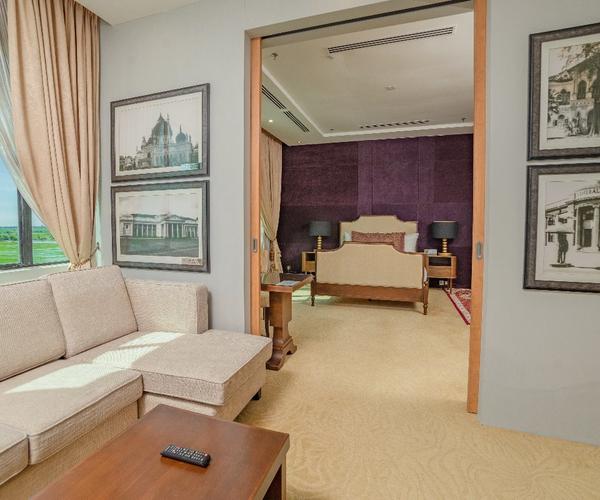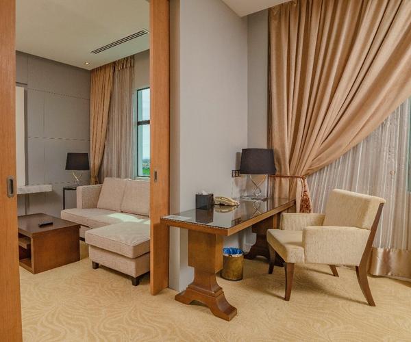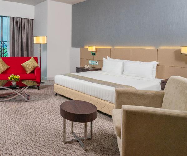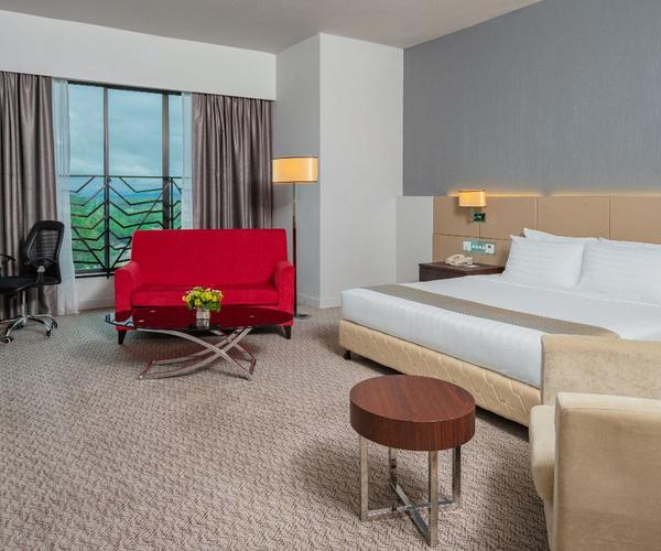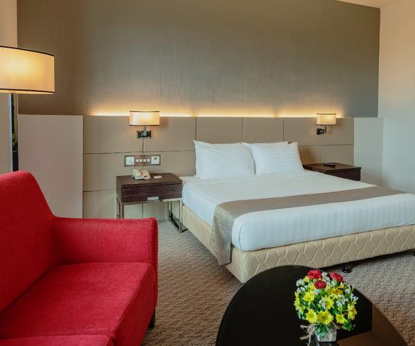 Modern room equipped with 1 King bed, sofa , air-conditioned , writing desk, telephone, flat-screen TV with satellite channels, electric kettle , ironing facilities …