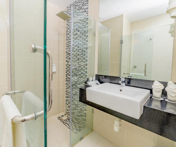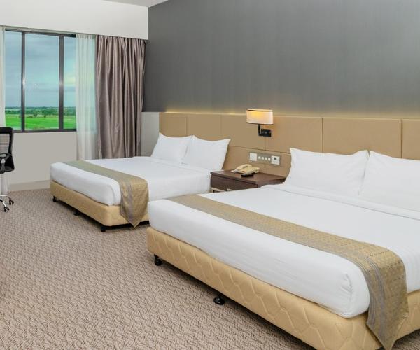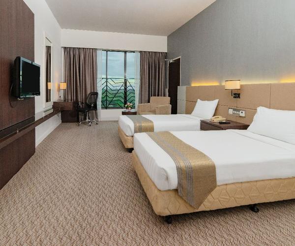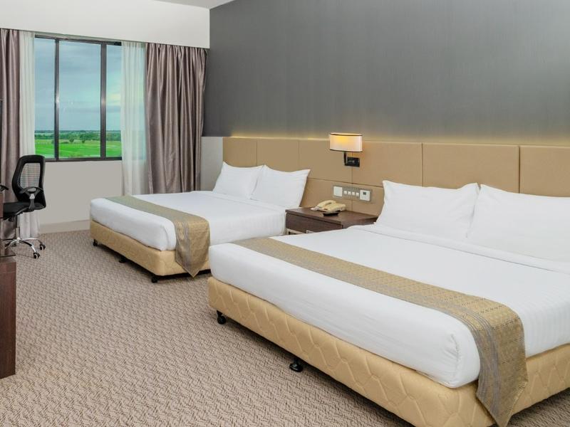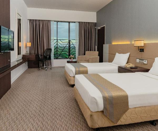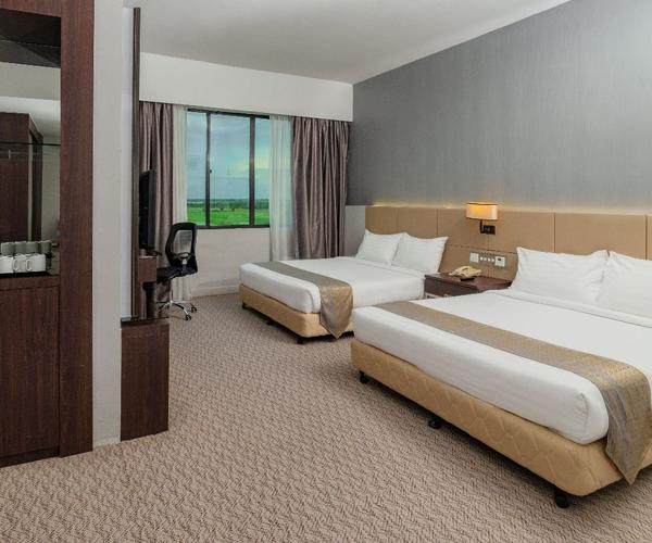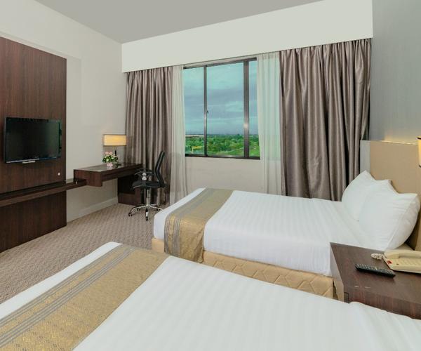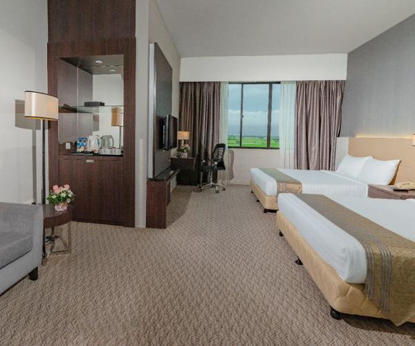 Modern rooms (35Sqm) with 2 Single bed, air-conditioned , writing desk, telephone, flat-screen TV with satellite channels, electric kettle , ironing facilities and safe box. The en suite bathroom comes with shower , toiletries and a hairdryer.