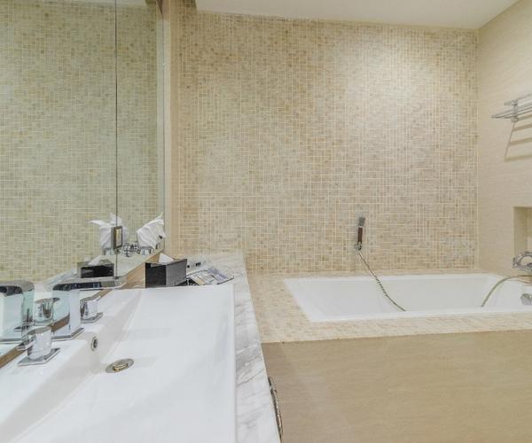 Modern room equipped with 1 King bed, air-conditioned , writing desk, telephone, flat-screen TV with satellite channels, electric kettle , ironing facilities and safe box. The en suite bathroom comes with bathtub, shower , toiletries and a hairdryer.