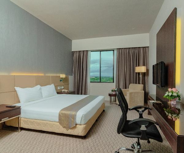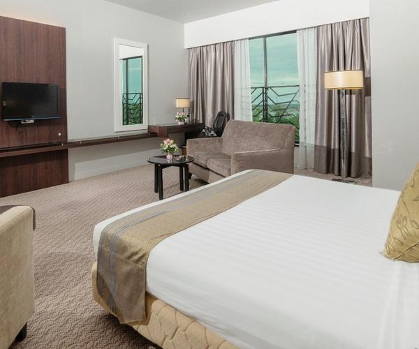 Modern rooms (35Sqm) with 1 King bed, air-conditioned , writing desk, telephone, flat-screen TV with satellite channels, electric kettle , ironing facilities and safe …