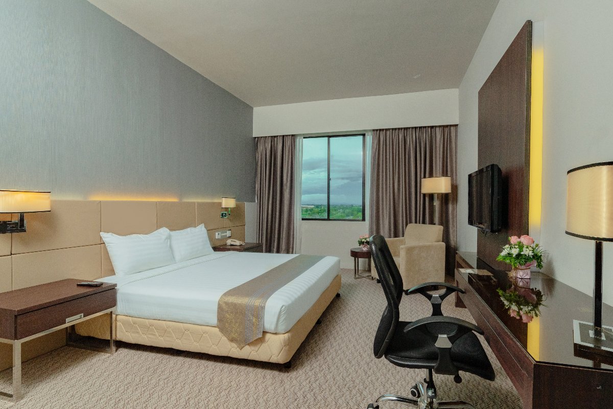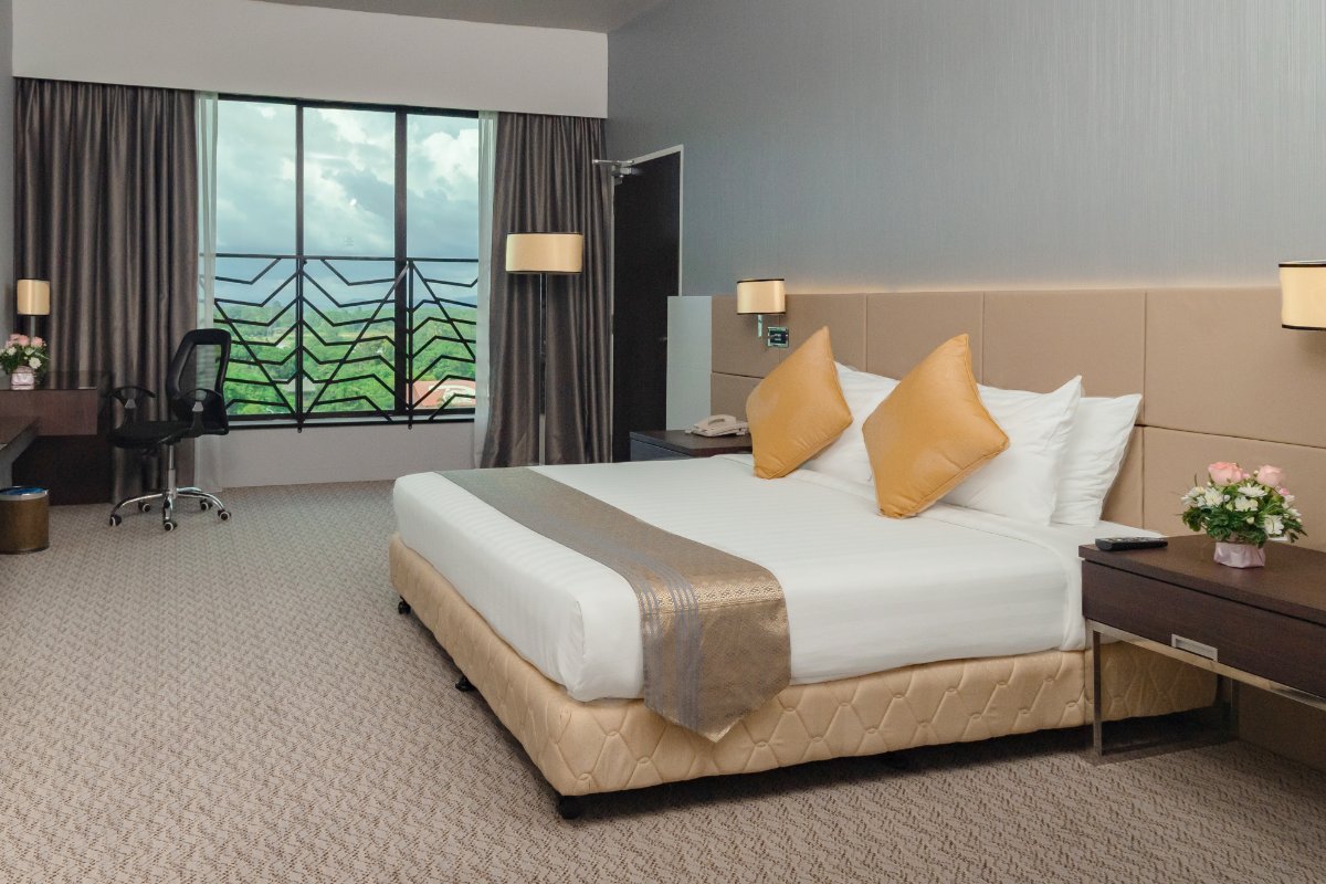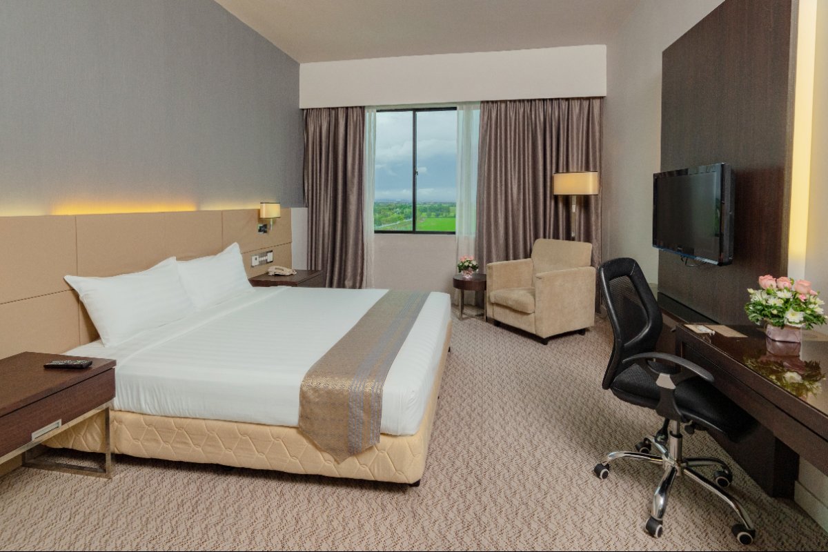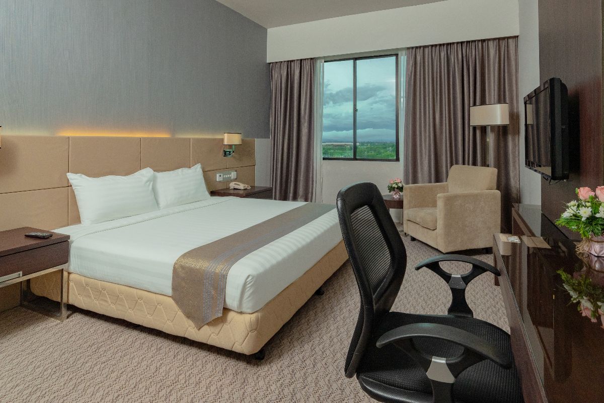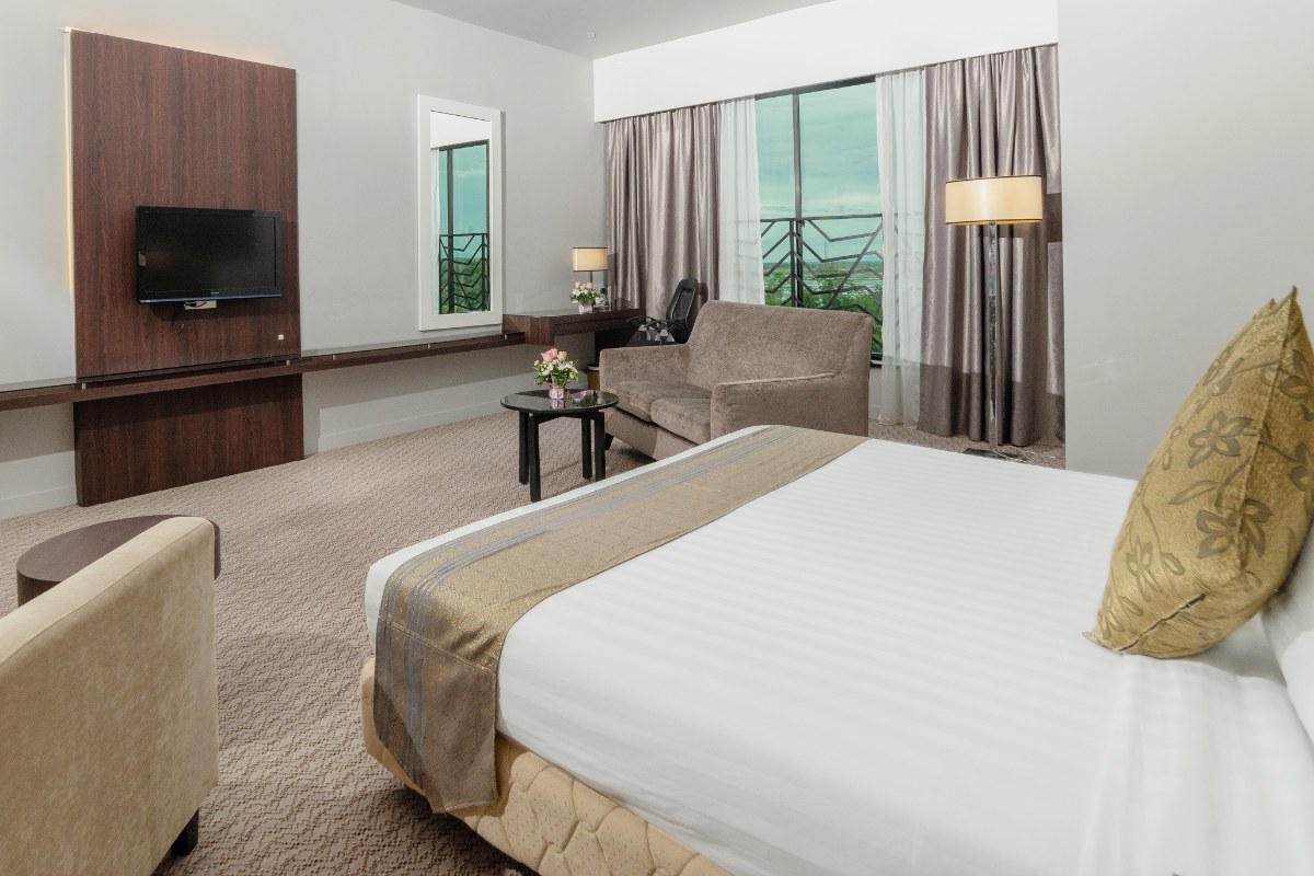 Modern rooms (35Sqm) with 1 King bed, air-conditioned , writing desk, telephone, flat-screen TV with satellite channels, electric kettle , ironing facilities and safe …
