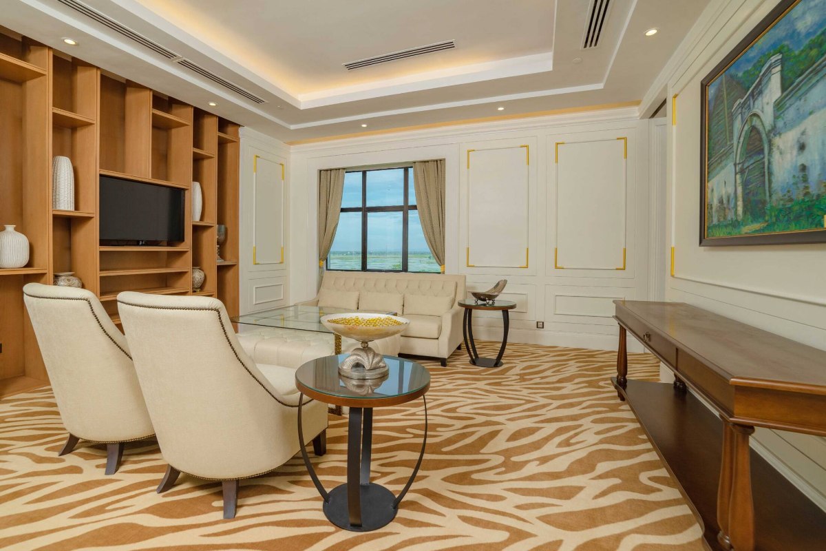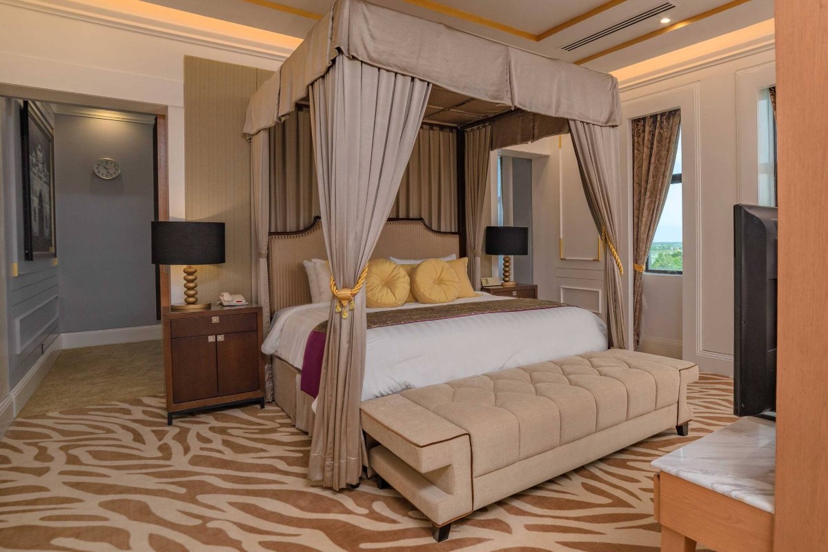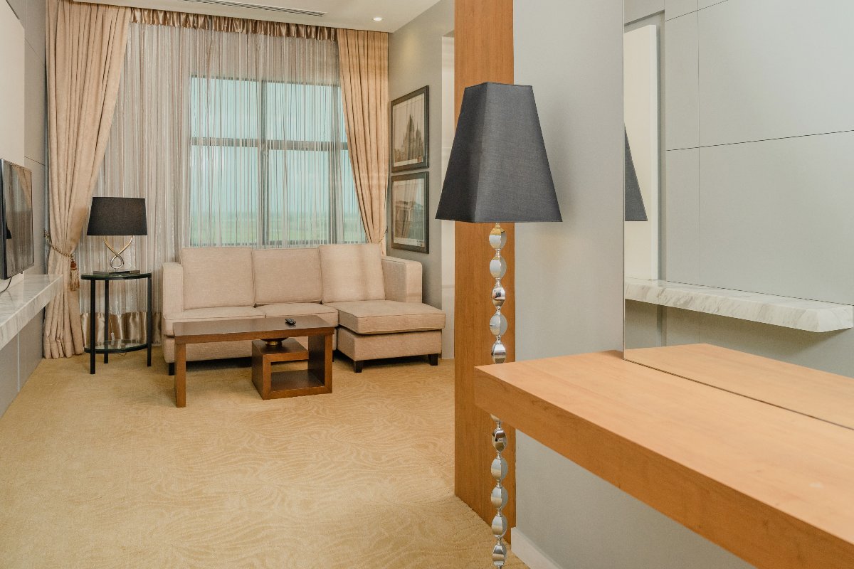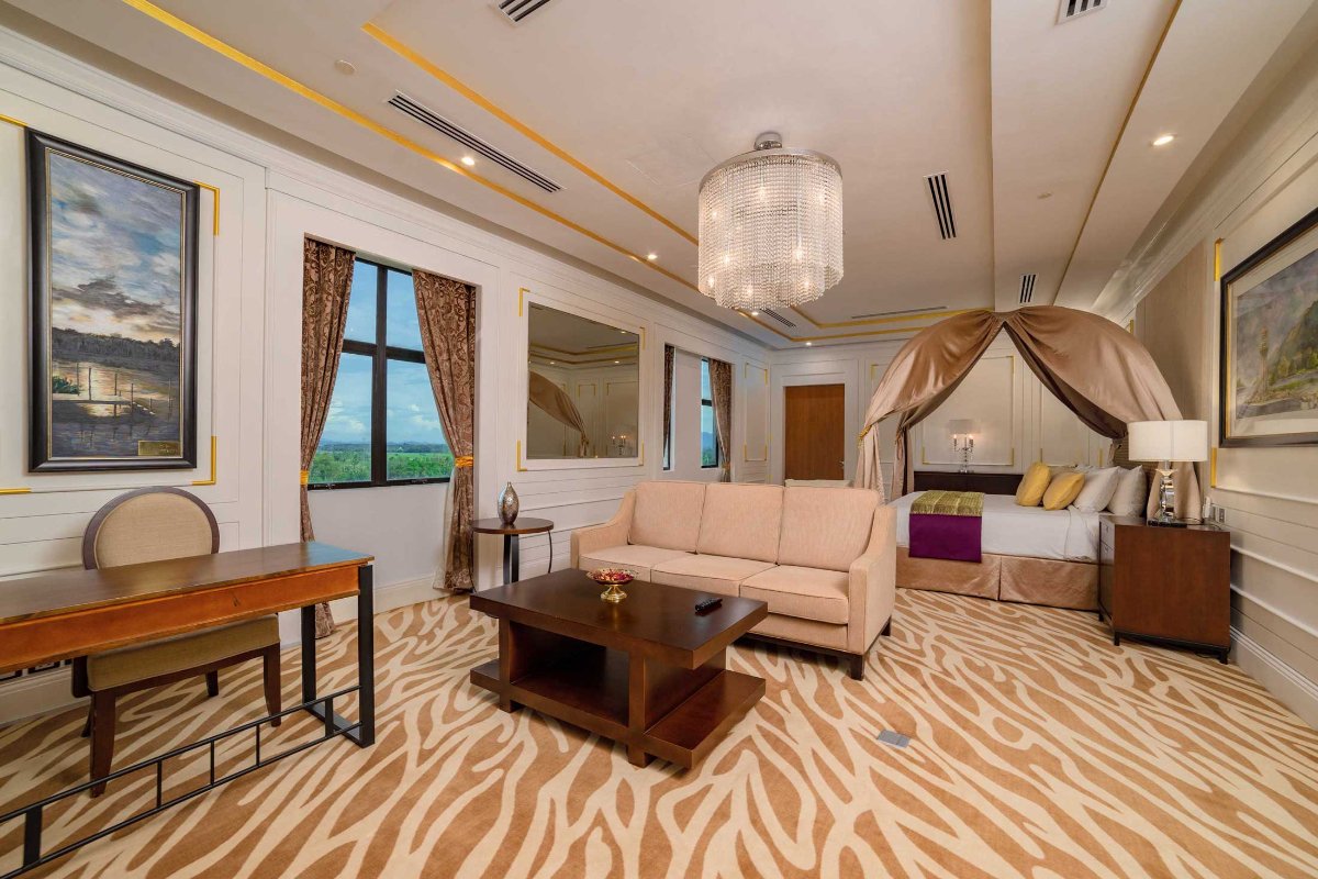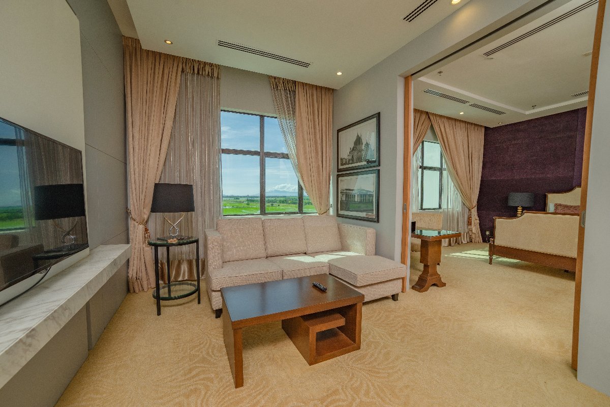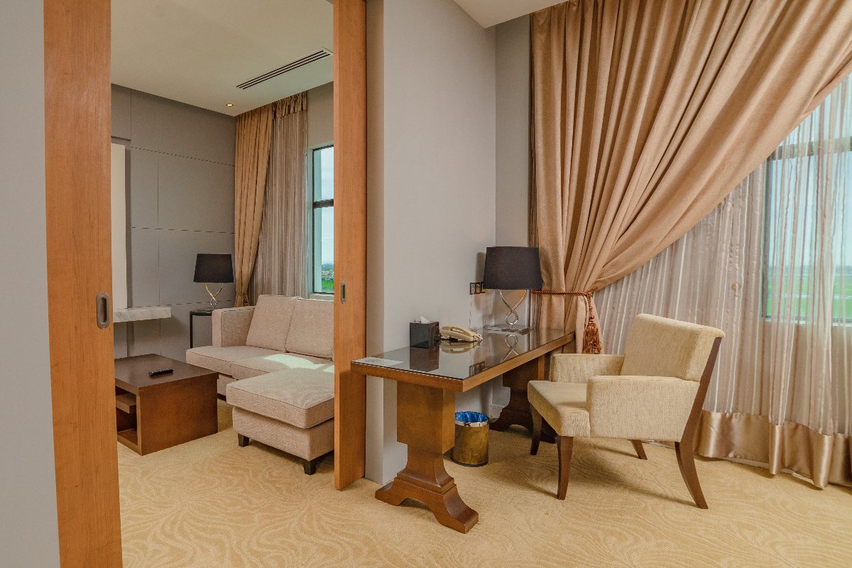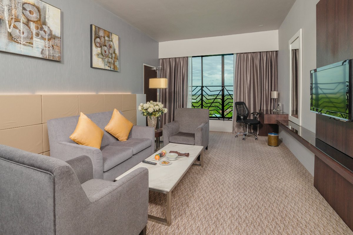 Modern room equipped with 1 King bed, sofa , air-conditioned , writing desk, telephone, flat-screen TV with satellite channels, electric kettle , ironing facilities …