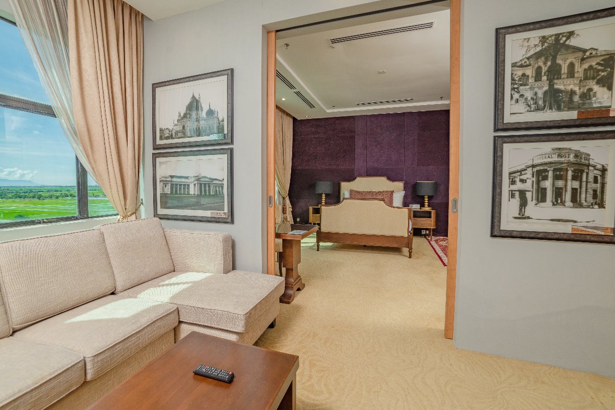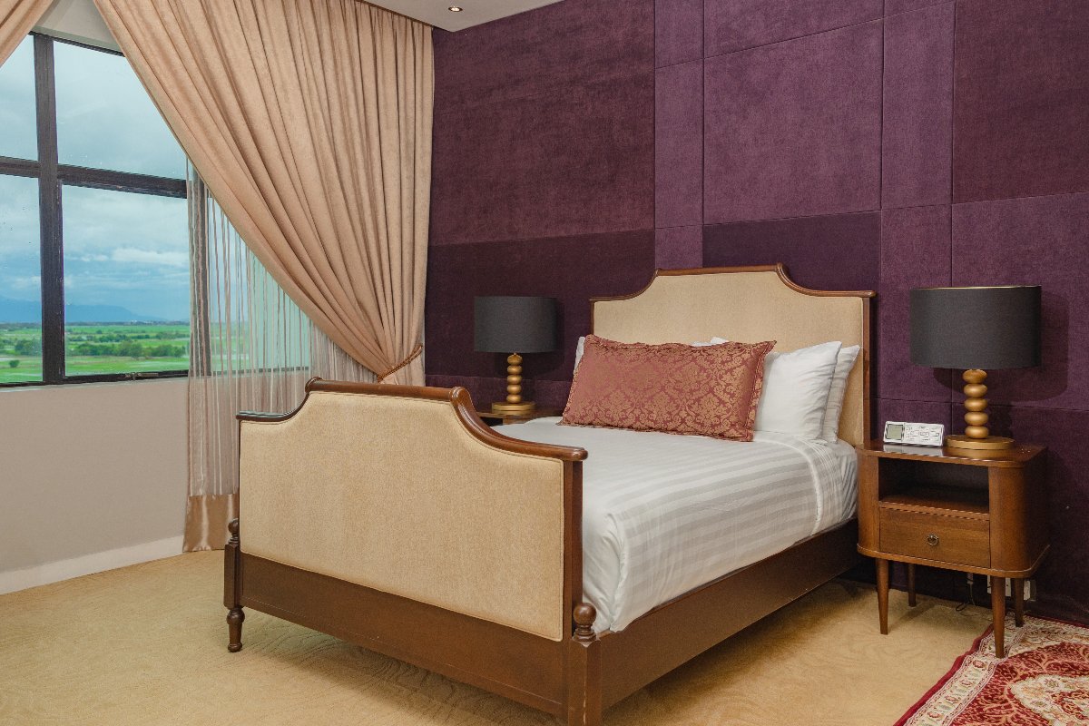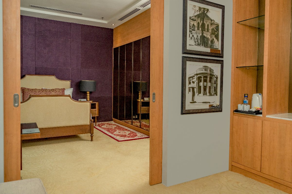 Savor the unparalleled privacy, spaciousness and luxury of our Royal Suite, which is located at level 8 at the tip of the hibiscus stigma. Within this 3,014 sq ft (280 sq mtr) duplex are 3 bedrooms with en suite bathroom, expansive living and dining area, two living hall, study room, walk-in wardrobe as well as kitchenette and bar area – all lavishly furnished to offer the ultimate experience for our guest. The room rate inclusive of premium amenities. Rooms are fitted with 2 King-size foster bed and 1 twin-size bed (separate unit) , air-conditioned with flat-screen TV and satellite channels, an electric kettle and a personal safe. The en suite bathroom comes with shower facilities, toiletries and a hairdryer. Pets are not allowed.