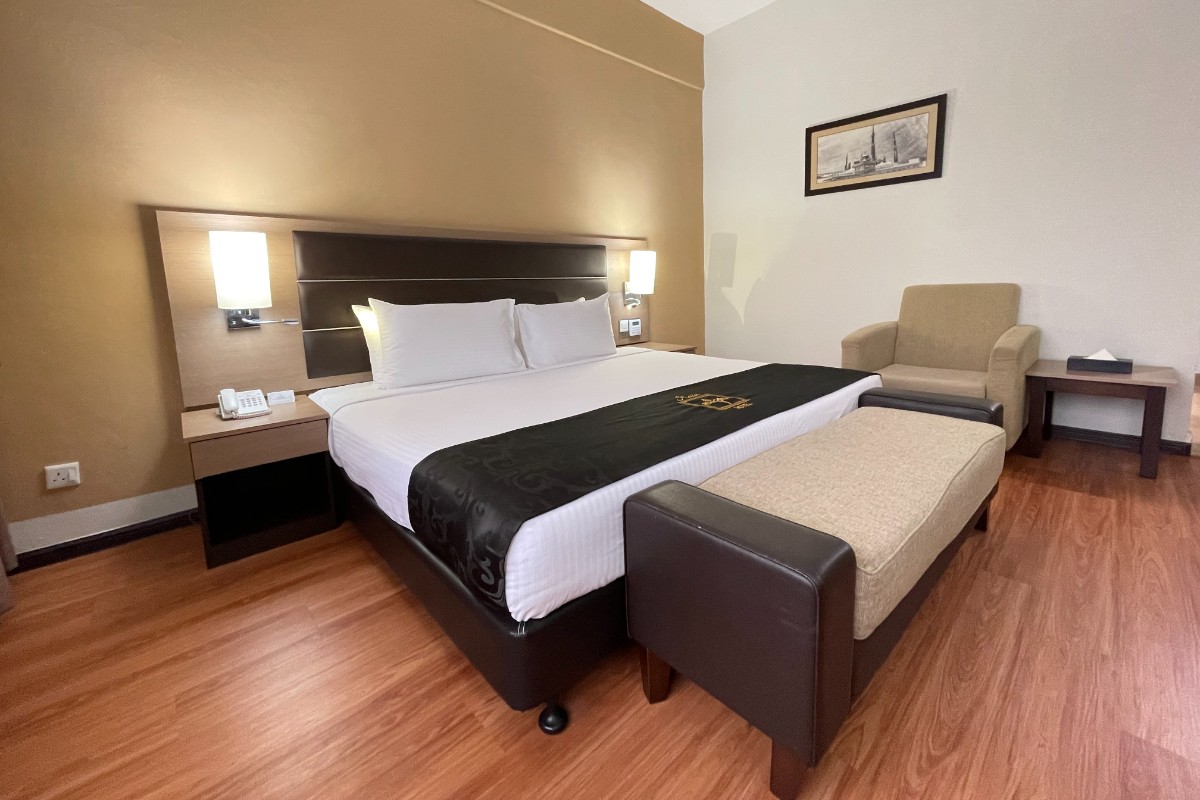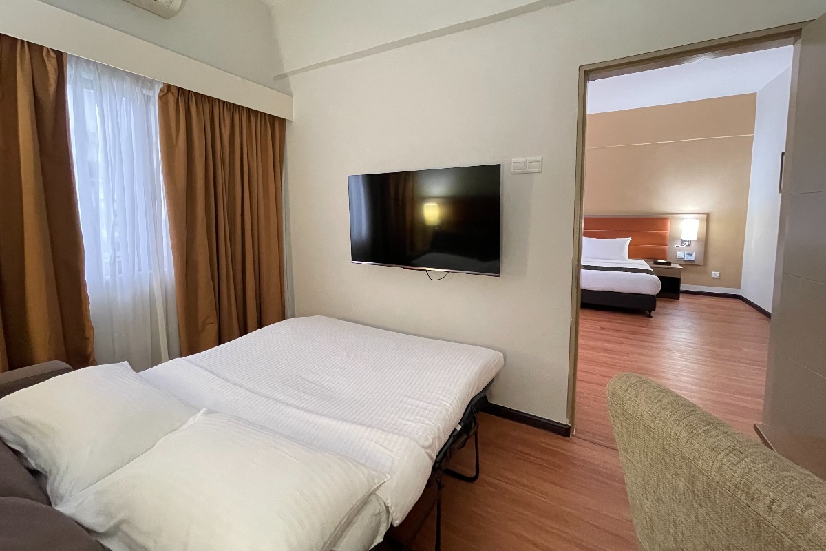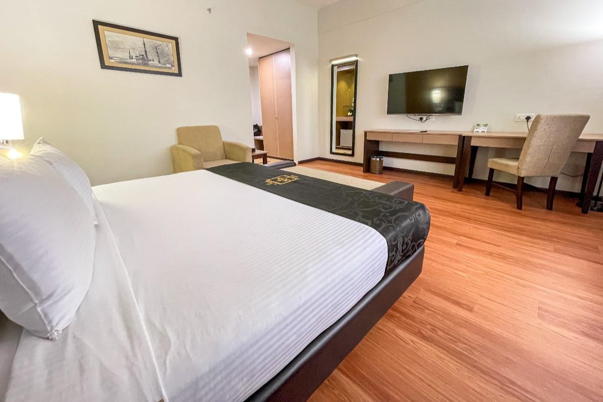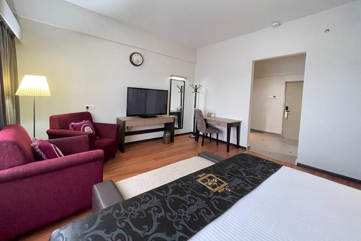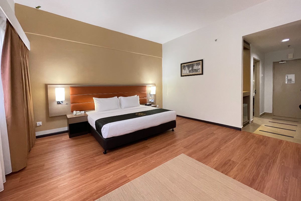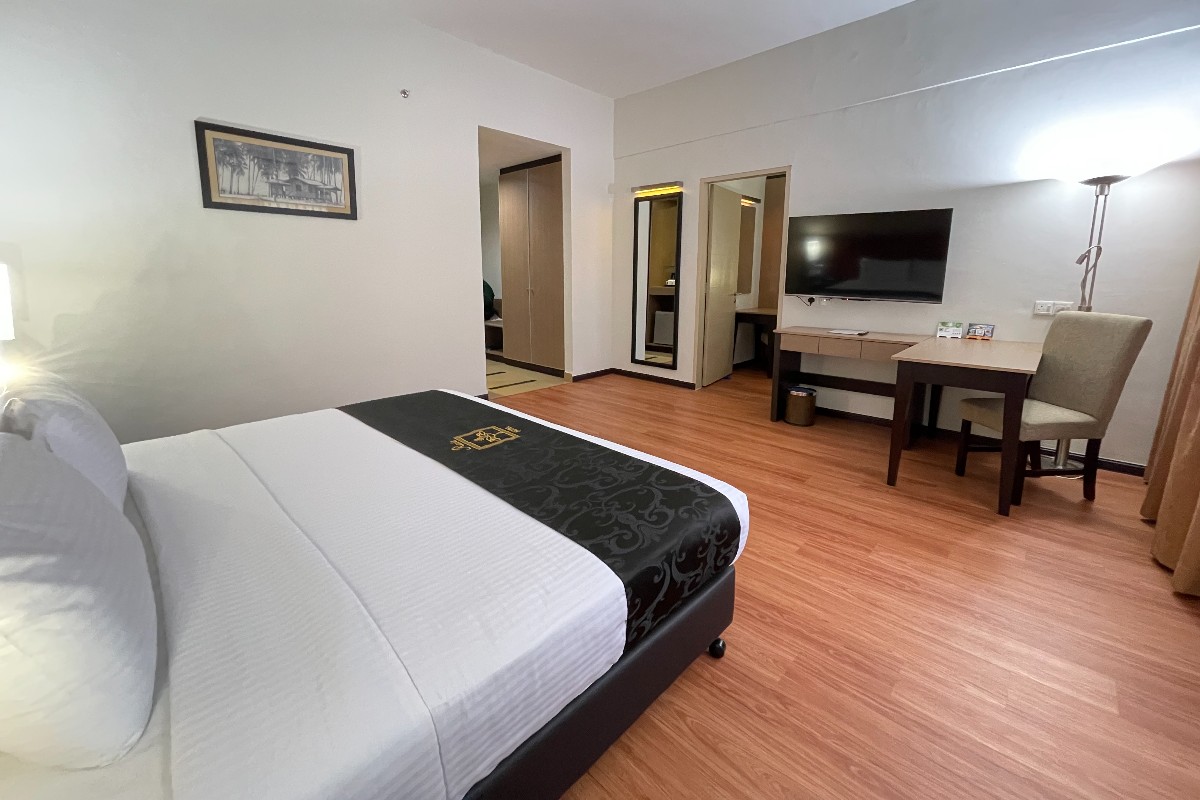 This air conditioned Studio Suite consist of 1 Queen bed equipped with living area, minibar, electric kettle and satellite TV. No smoking allowed.