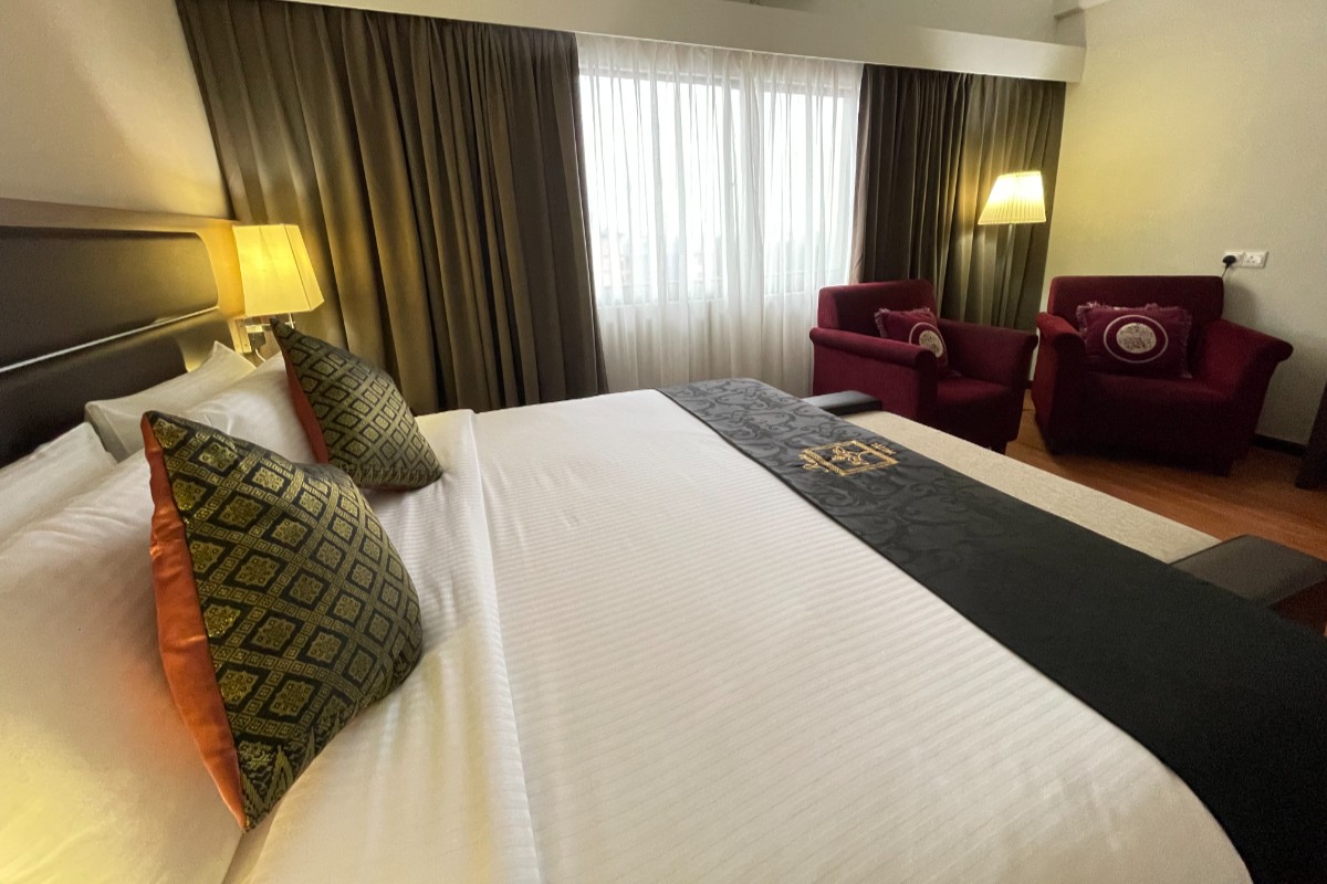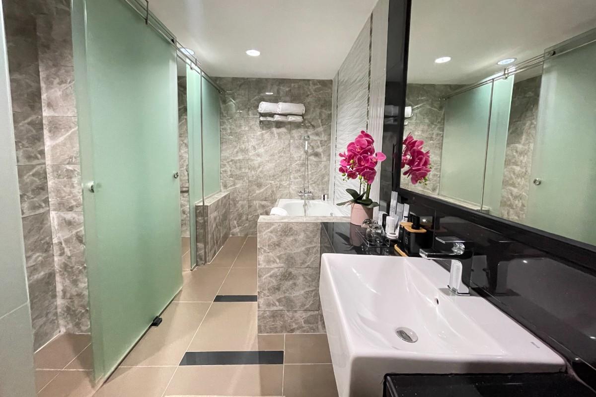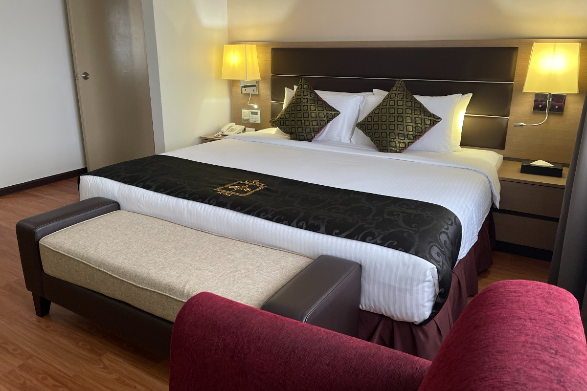 This spacious air-conditioned Executive Suite (67 Sqm) 1 Queen bed and 1 single bed is fitted with a flat-screen satellite TV, sofa and a desk. The private bathroom includes shower facilities and a hairdryer. No smoking allowed.