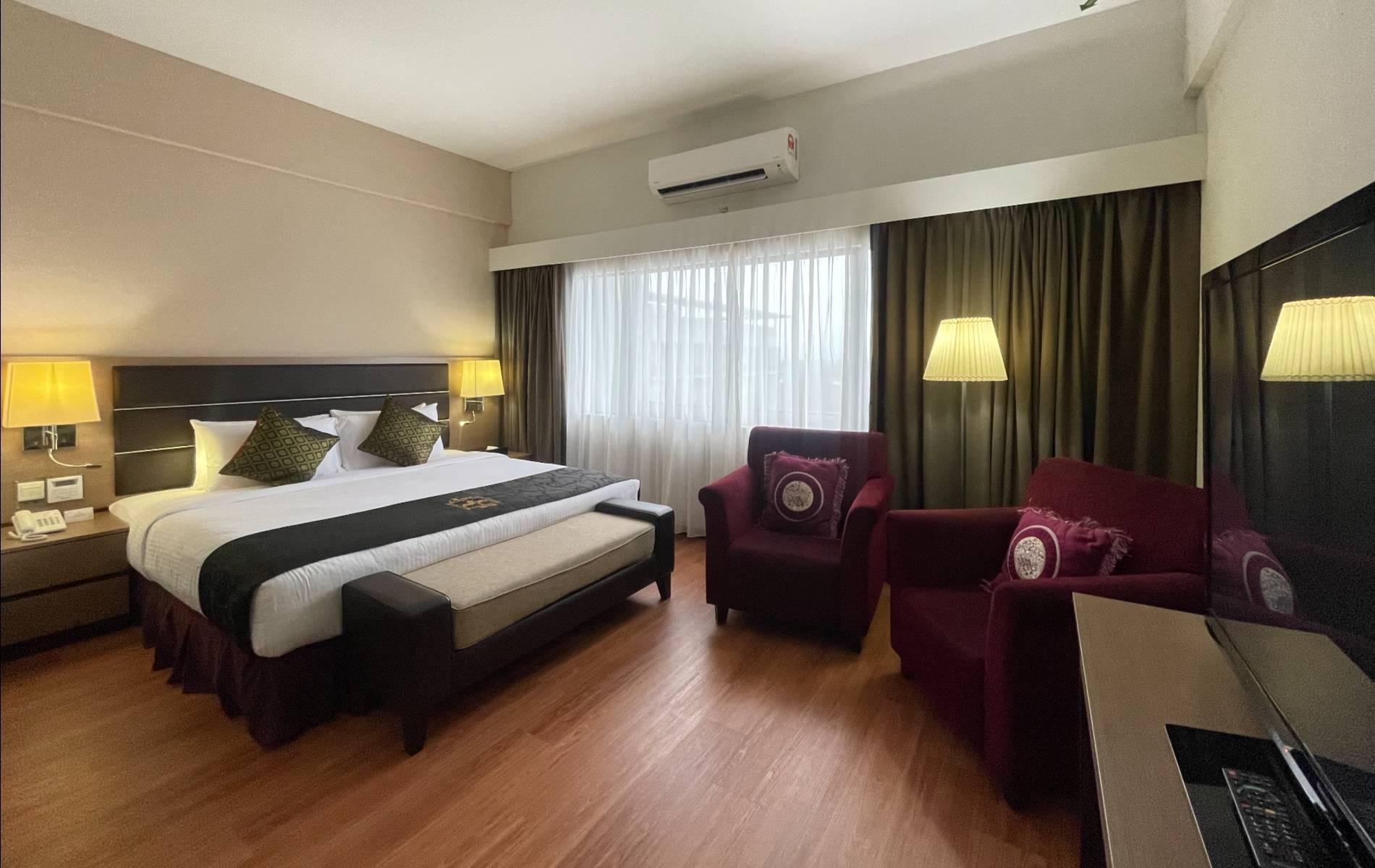 This spacious air-conditioned superior king room (35Sqm) with 1 King bed is fitted with a flat-screen satellite TV, mini-bar and a desk. The private bathroom includes shower facilities and a hairdryer. No smoking allowed.