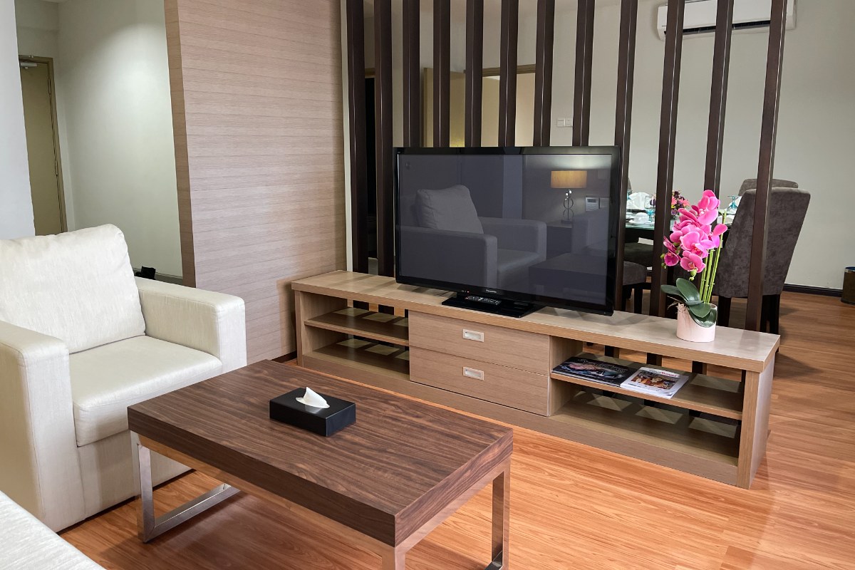 This spacious air-conditioned Executive Suite (67 Sqm) 1 Queen bed and 1 single bed is fitted with a flat-screen satellite TV, sofa and a …
