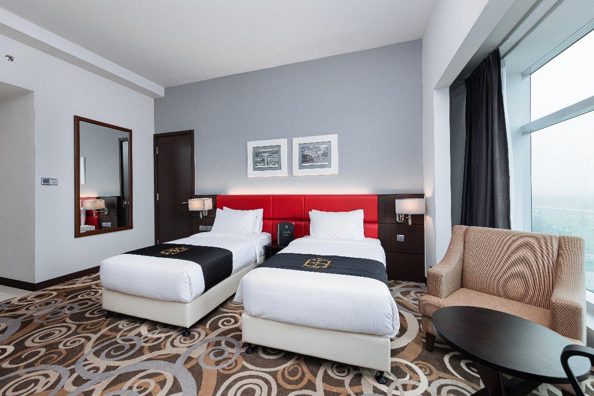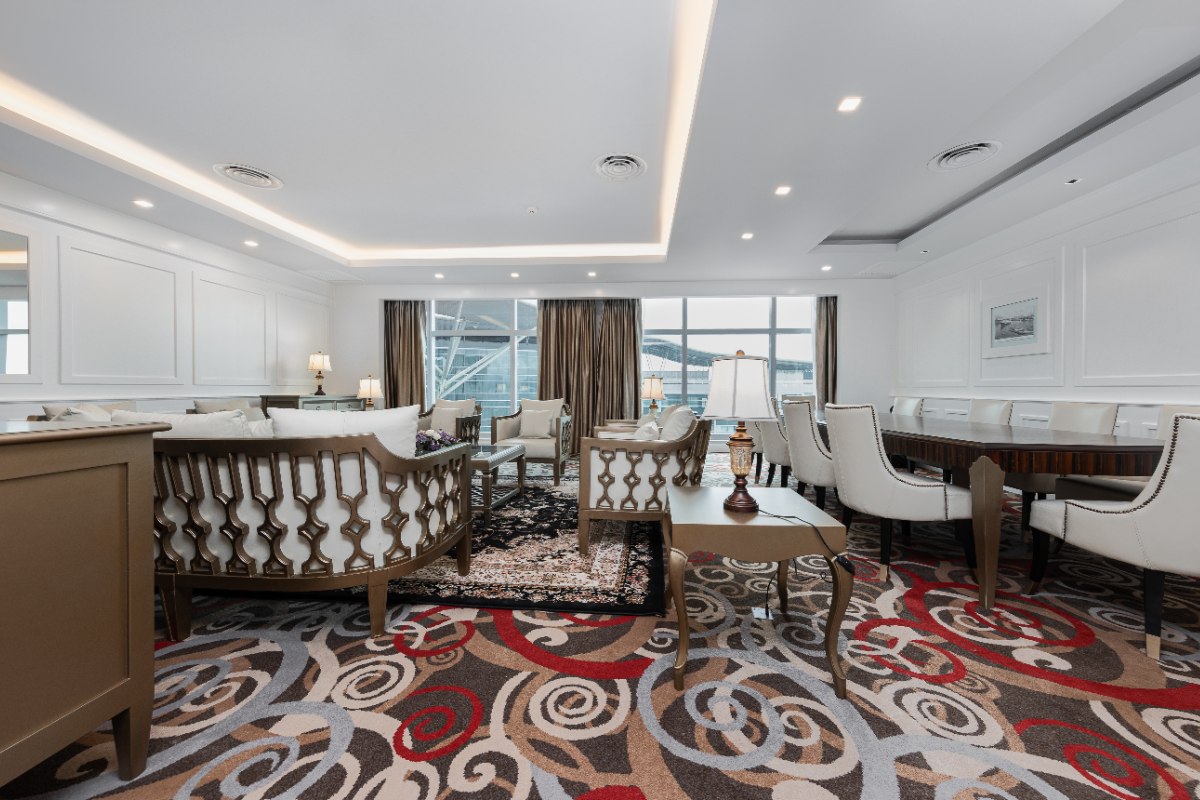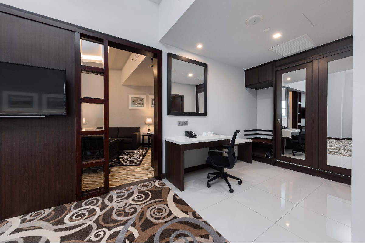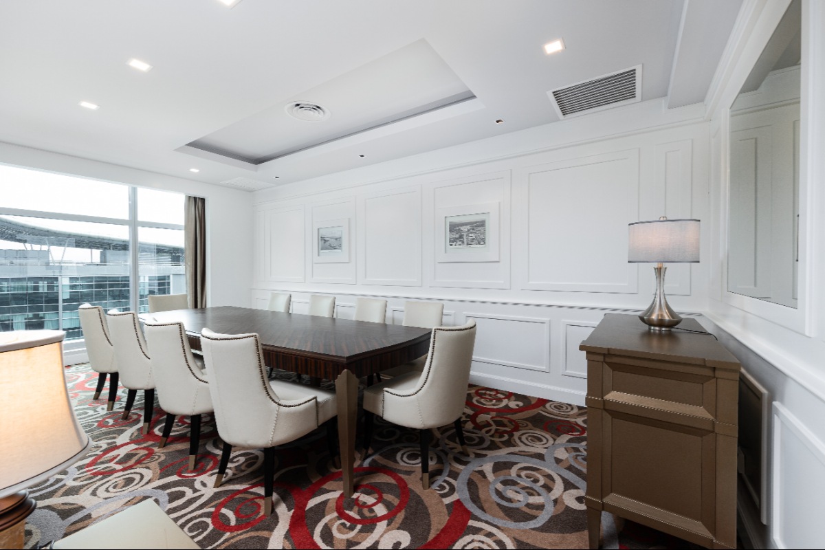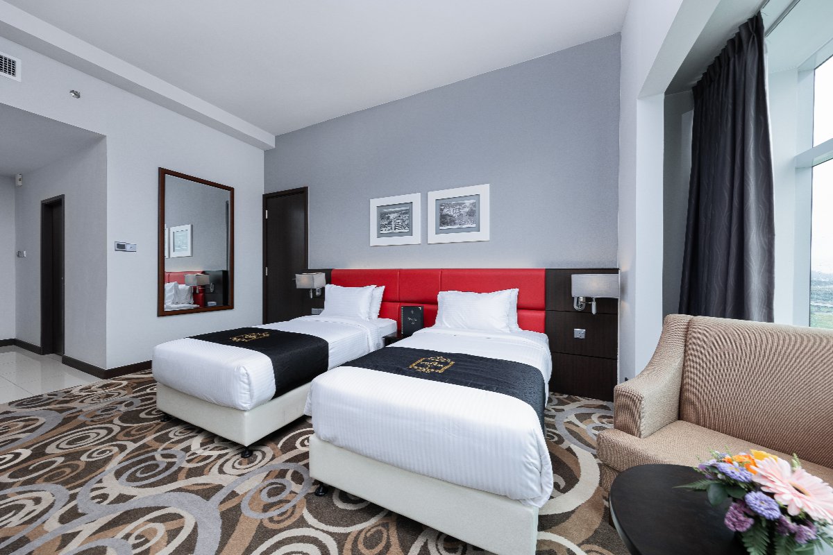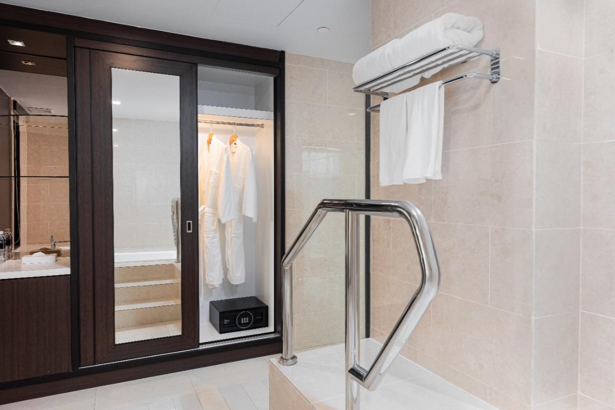 Rooms are fitted with a King-size bed and living area (58 sqm), equipped with air-conditioned, electronic keycard lock, flat-screen TV satellite channels, IDD telephone, work desk, tea/coffee making facilities, minibar, ironing facilities, and safe box. The en suite bathroom comes with shower facilities, toiletries, and a hairdryer. All units are non-smoking rooms.