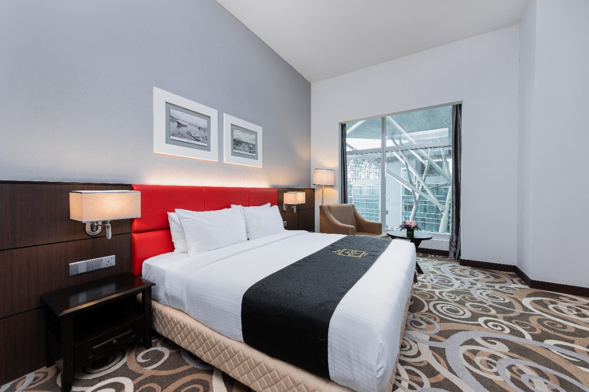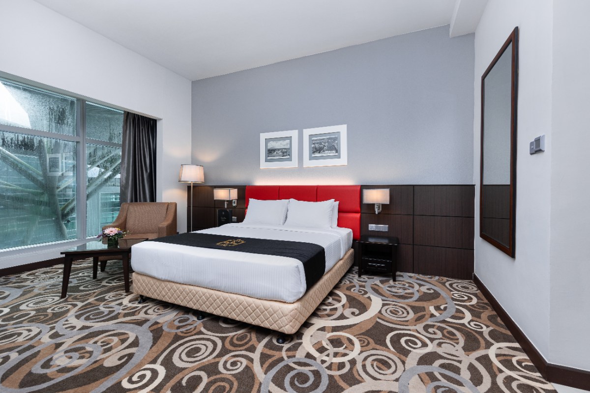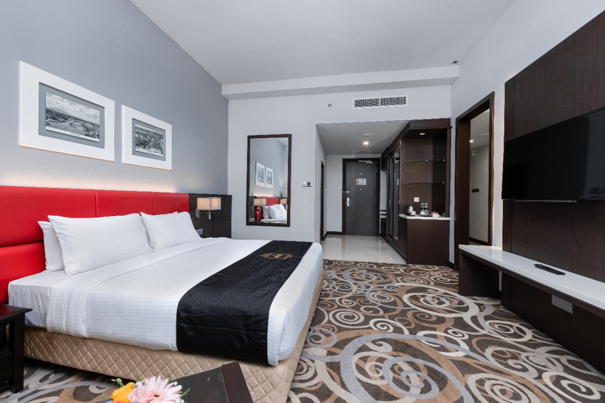 Rooms are fitted with a King-size bed (34 sqm), equipped with air-conditioned, electronic keycard lock, flat-screen TV satellite channels, IDD telephone, work desk, tea/coffee making facilities, minibar, ironing facilities, and safe box. The en suite bathroom comes with shower facilities, toiletries, and a hairdryer. All units are non-smoking.