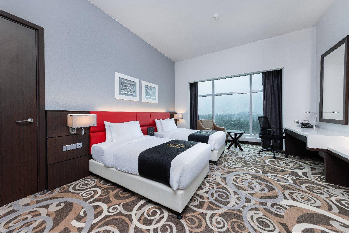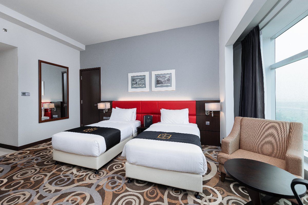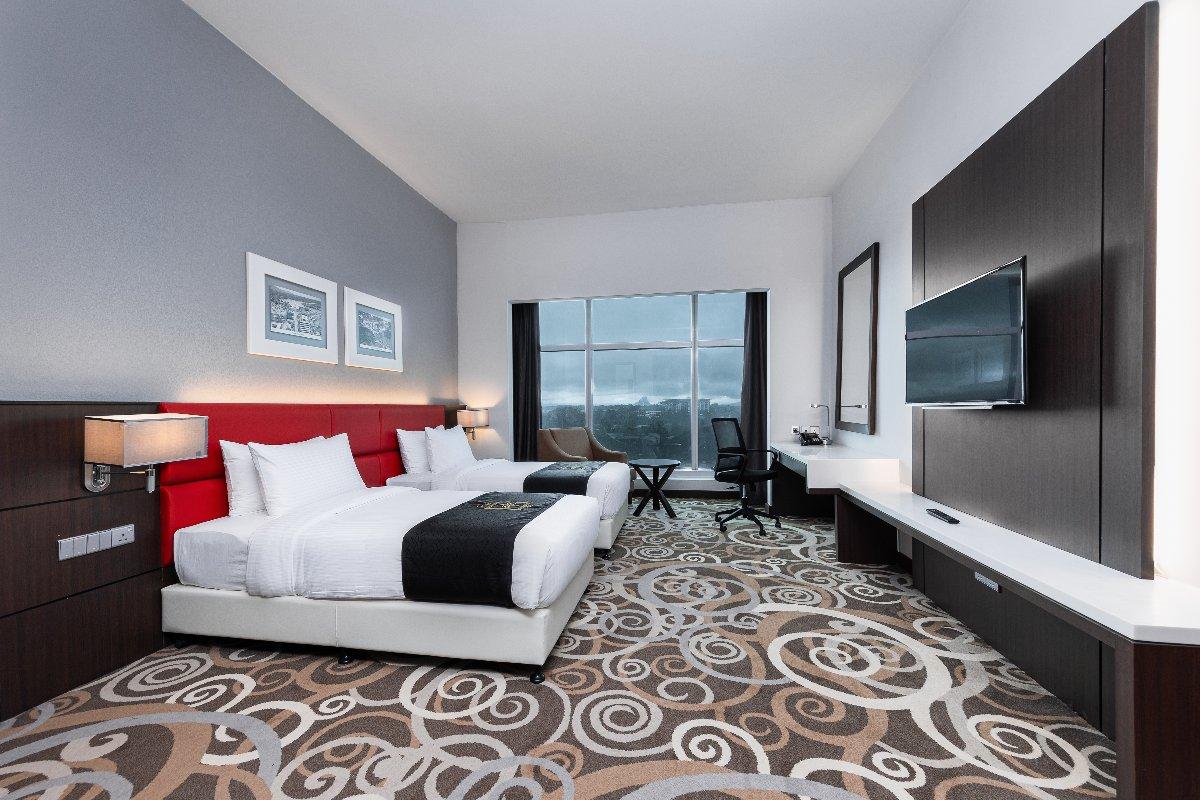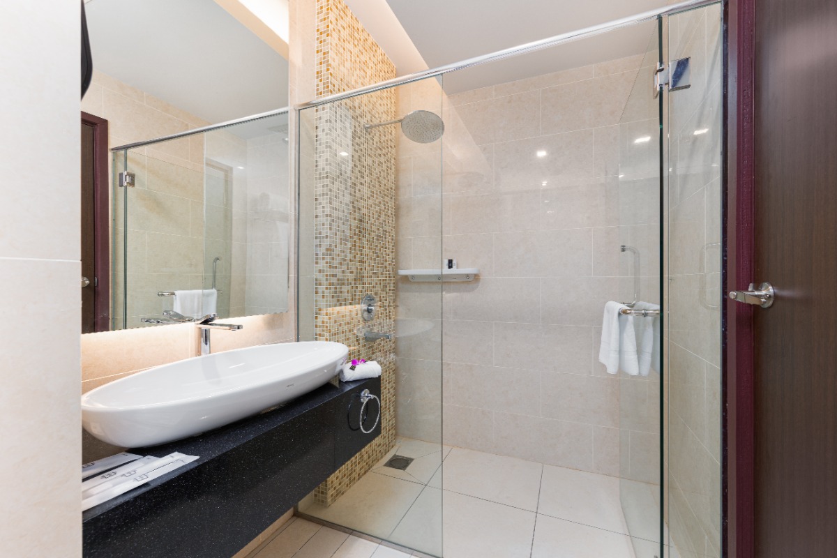 Rooms are fitted with a King-size bed (34 sqm), equipped with air-conditioned, electronic keycard lock, flat-screen TV satellite channels, IDD telephone, work desk, tea/coffee making facilities, minibar, ironing facilities, and safe box. The en suite bathroom comes with shower facilities, toiletries, and a hairdryer. All units are non-smoking.