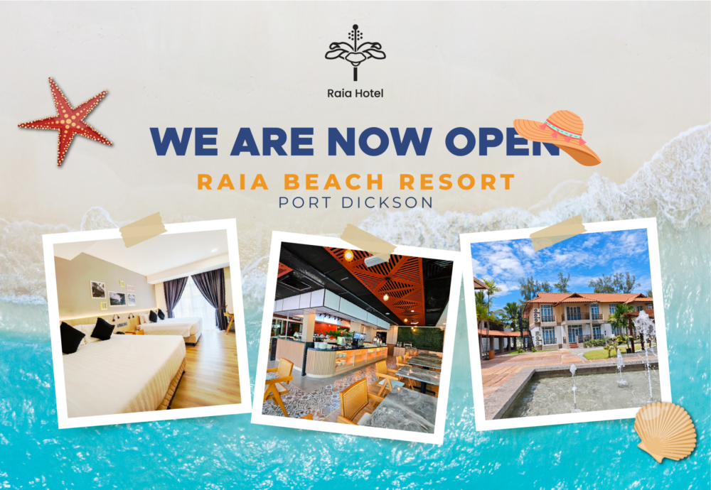 Raia Beach Resort Port Dickson is a 4-star beachfront retreat located just 10 minutes from the town centre. It features 5 blocks of 2-storey buildings with 62 bright and breezy rooms and suites, including spacious family units designed for comfort and connection.
