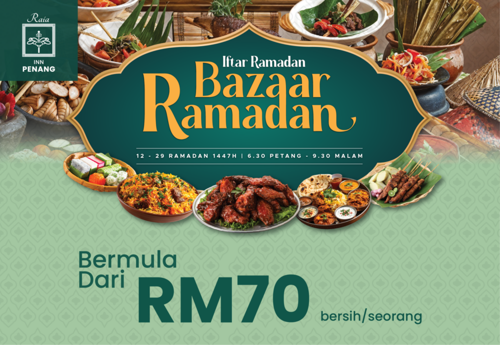Sambut keindahan Ramadan di Raia Inn Penang dengan buffet iftar “Bazaar Ramadan”, menampilkan hidangan penuh selera daripada masakan Melayu Tradisional, India Muslim, Thai dan Timur Tengah. Berlangsung dari 18 Februari hingga 18 Mac 2026 di Mutiara Ballroom, ia adalah tempat yang sesuai untuk berbuka bersama keluarga, rakan dan rakan kerja.